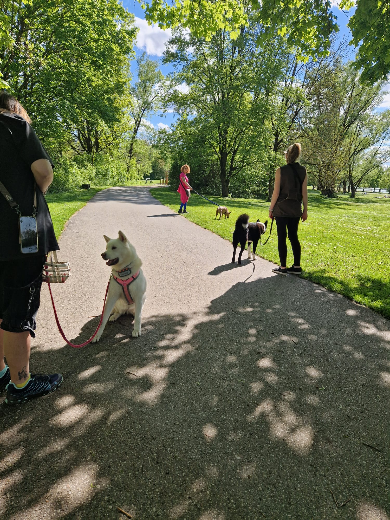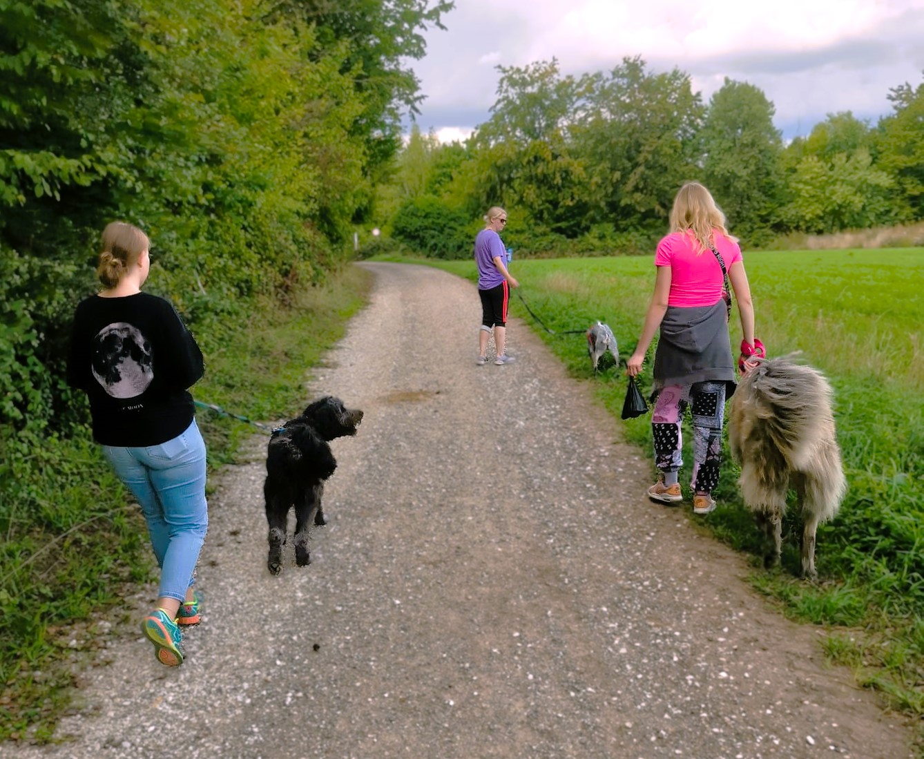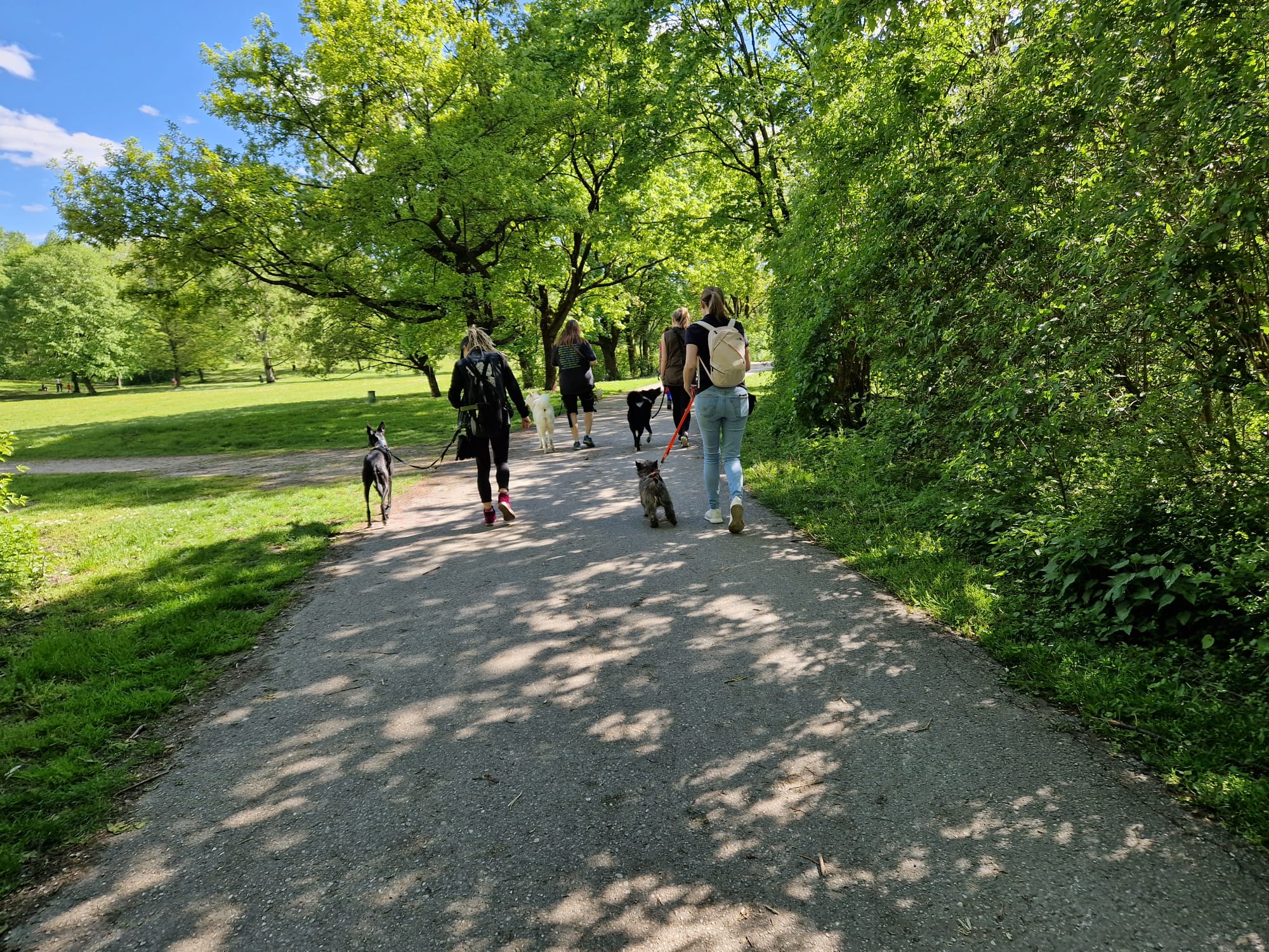 Während des Spaziergangs bleiben alle Hunde an der Leine.